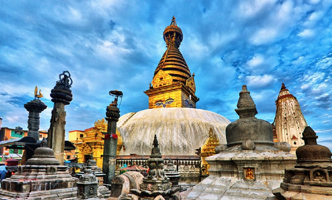 • Swayambhunath Temple: Climb the sacred Monkey Temple, a hilltop sanctuary offering panoramic views of Kathmandu Valley.