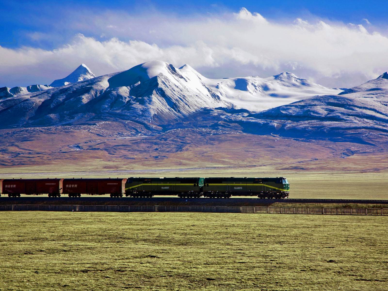 As you ascend the Tibetan Plateau, the scenery transforms into a surreal wonderland of snow-capped peaks, turquoise lakes, and vast grasslands. The train climbs higher and higher, reaching an altitude of over 5,000 meters above sea level. With each turn of the tracks, the mountains grow more majestic and the plateau stretches to the horizon like an endless tapestry.