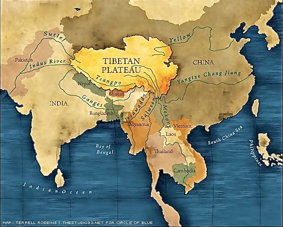 Rivers: A network of rivers flows through Tibet, originating from the glaciers and snowmelt of the Himalayas. The Yarlung Tsangpo River, also known as the Brahmaputra River, is the most significant river in Tibet, flowing eastwards through deep gorges and valleys. Notable rivers like the Indus, Salween, Mekong, and Yangtze also have their sources in Tibetan glaciers.